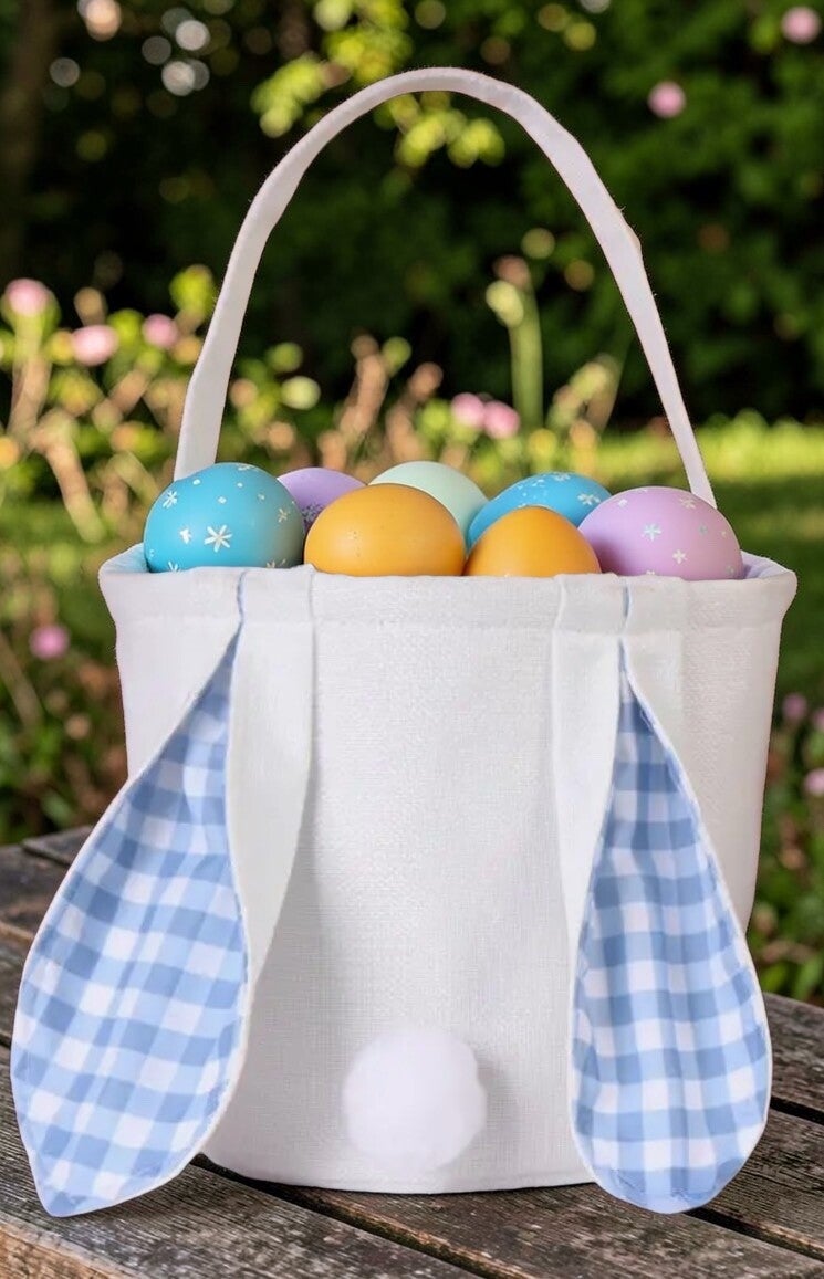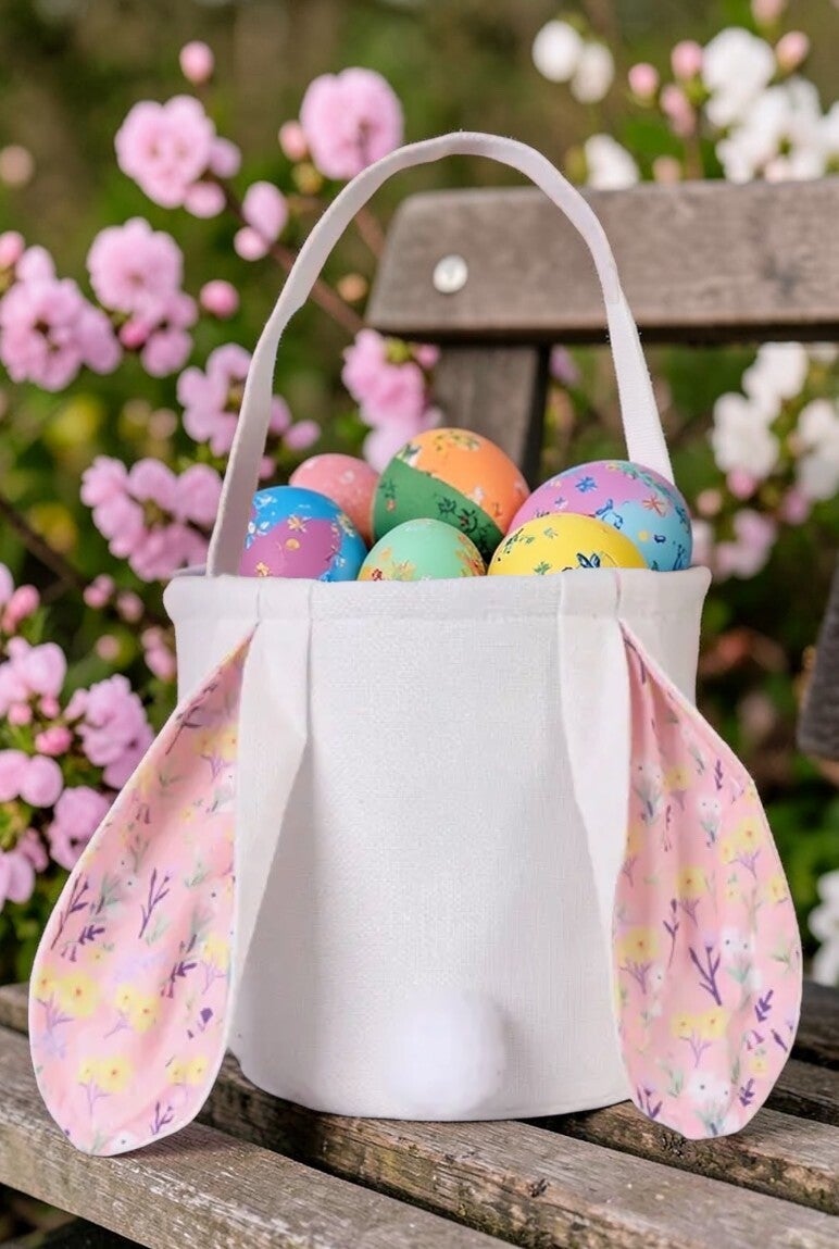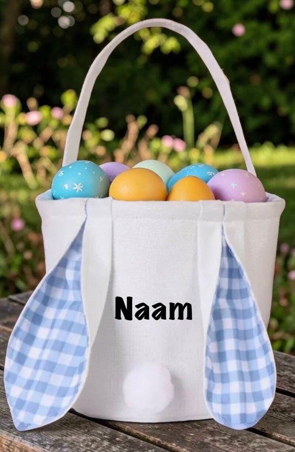Paasmandje met oren geborduurd met naam of tekst – een persoonlijk paasmandje cadeau voor elk kind