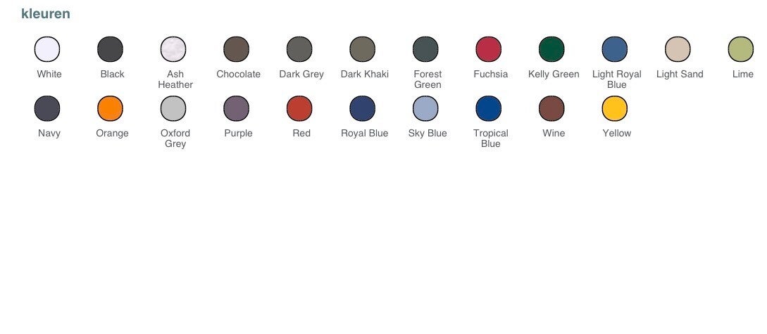 - Effen kleuren : 100% katoen. Oxford Grey : 90% katoen / 10% viscose.