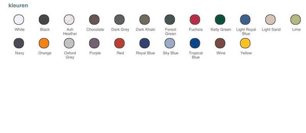 Standaardprijs is van toepassing voor opdruk op borst en rug in max. 2 kleuren (totaal)