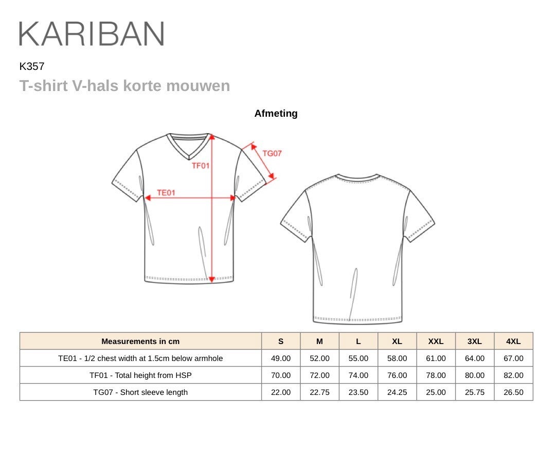10 x Kariban K357 Heren T-Shirt V-Hals Pakket