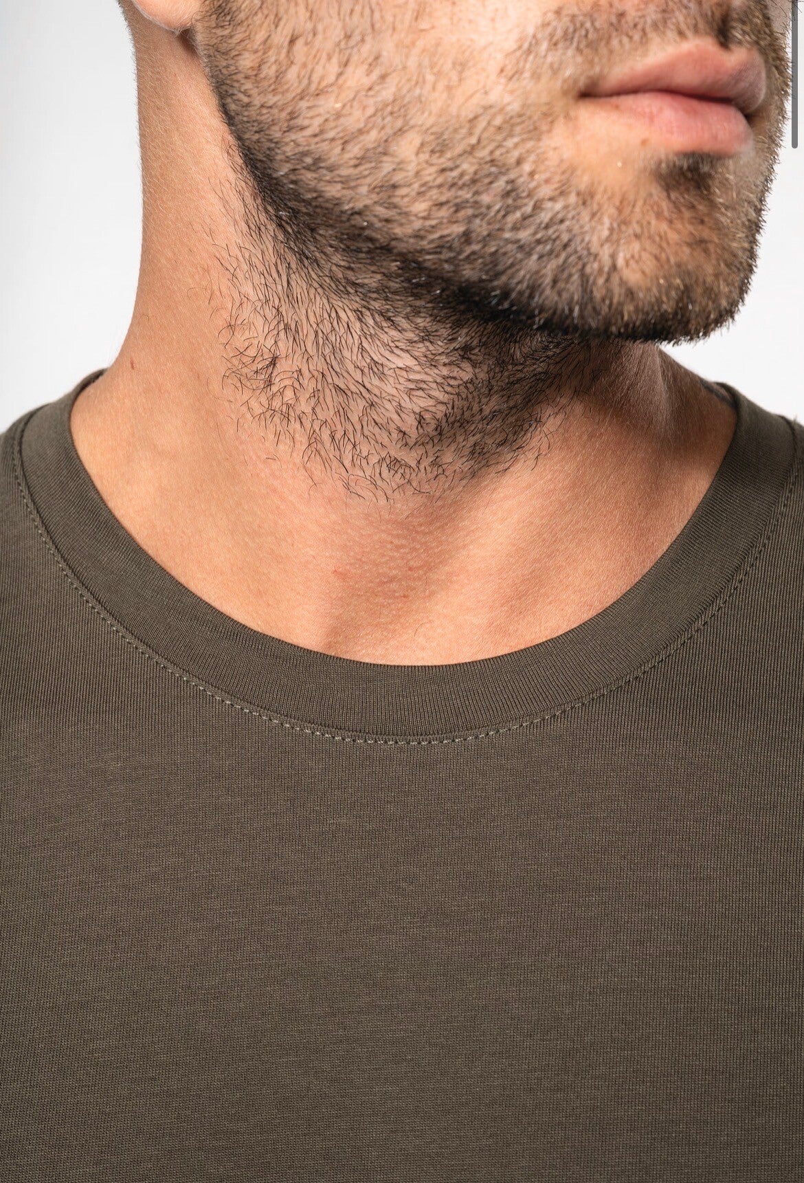 - Gekamd enzymbehandeld katoen. Rechte snit. Nektape (toon-op-toon voor White, Dark Grey voor Oxford Grey en Oxford Grey voor de overige kleuren).