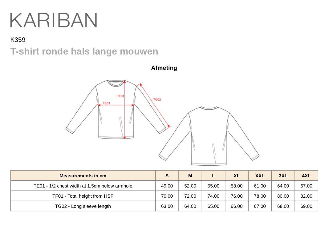Maten: XS - S - M - L- XL - XXL - 3XL- 4XL