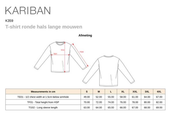 10x Kariban K359 Heren T-Shirt ronde hals met lange mouwen.