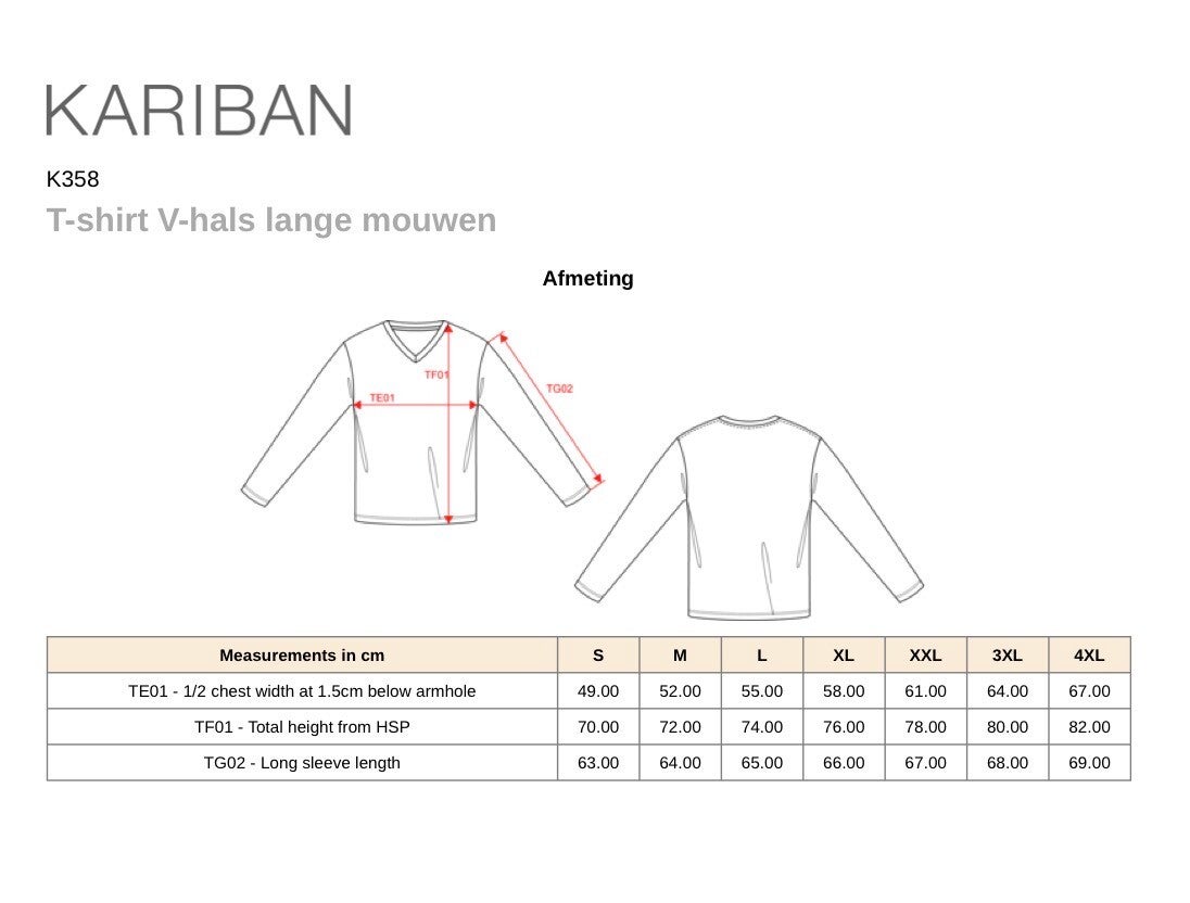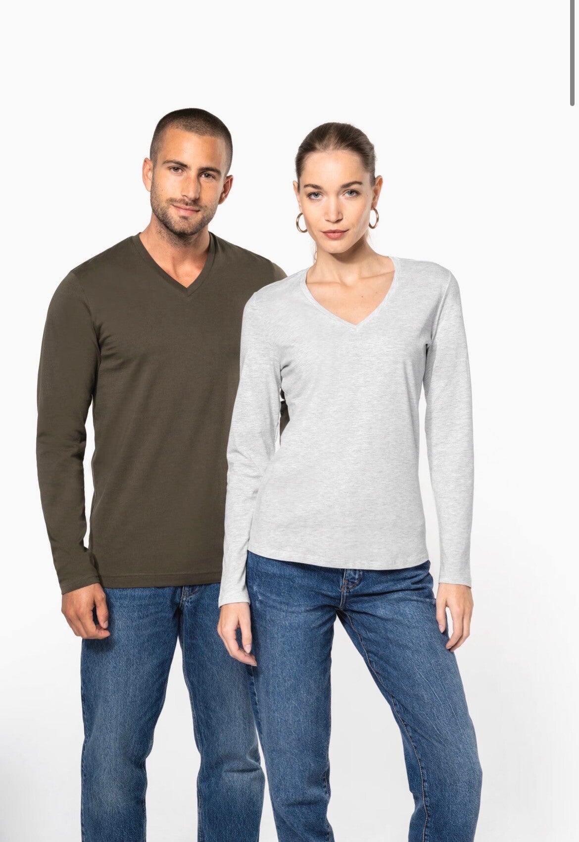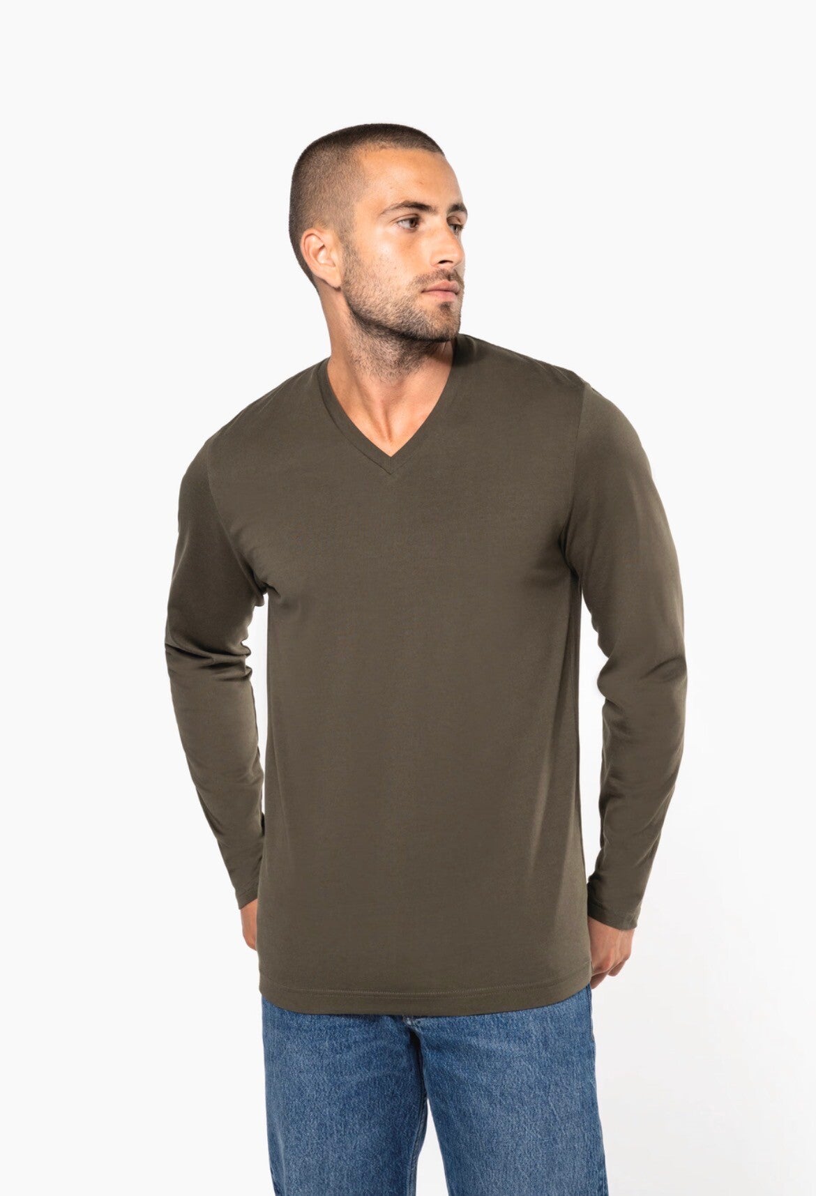 10x Kariban K358 Heren T-Shirt V-hals met lange mouwen.