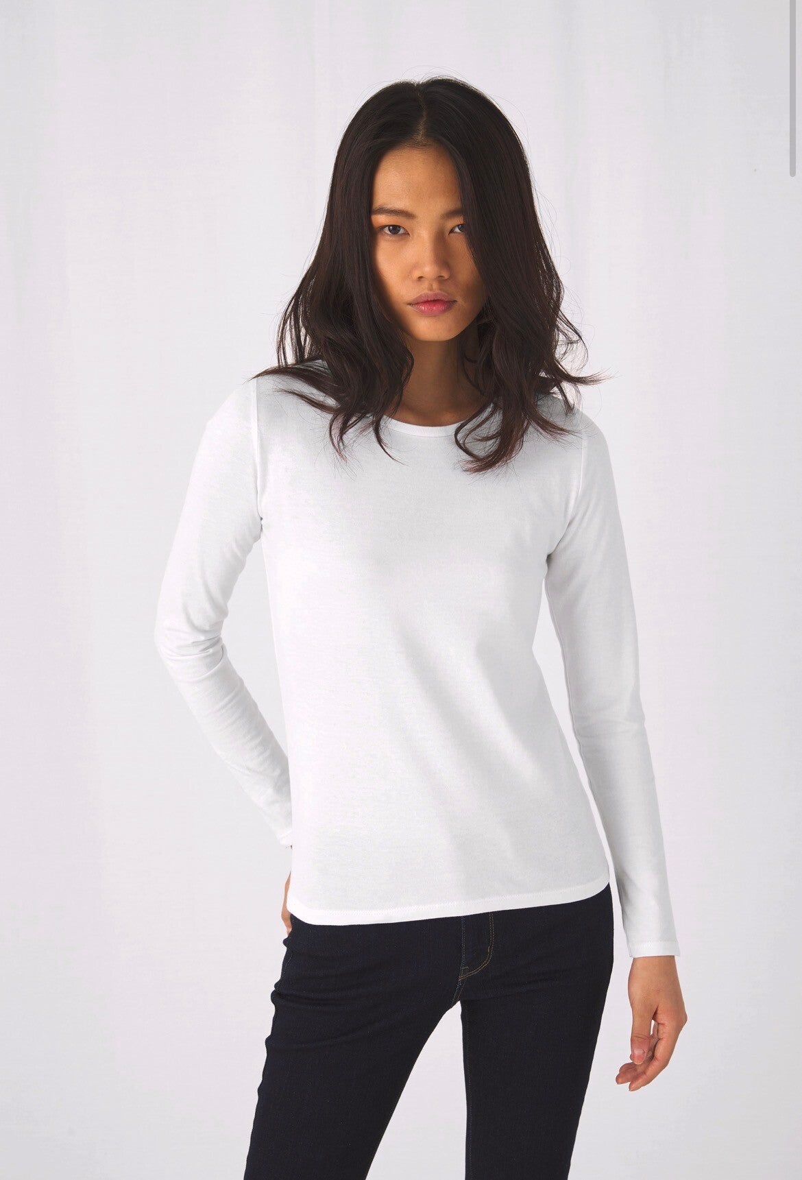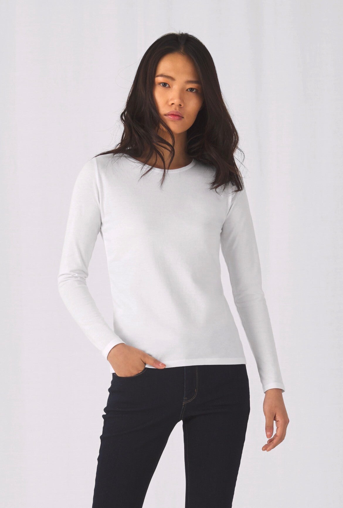 10x B&C E 190 Dames T-Shirt ronde hals met lange mouwen.